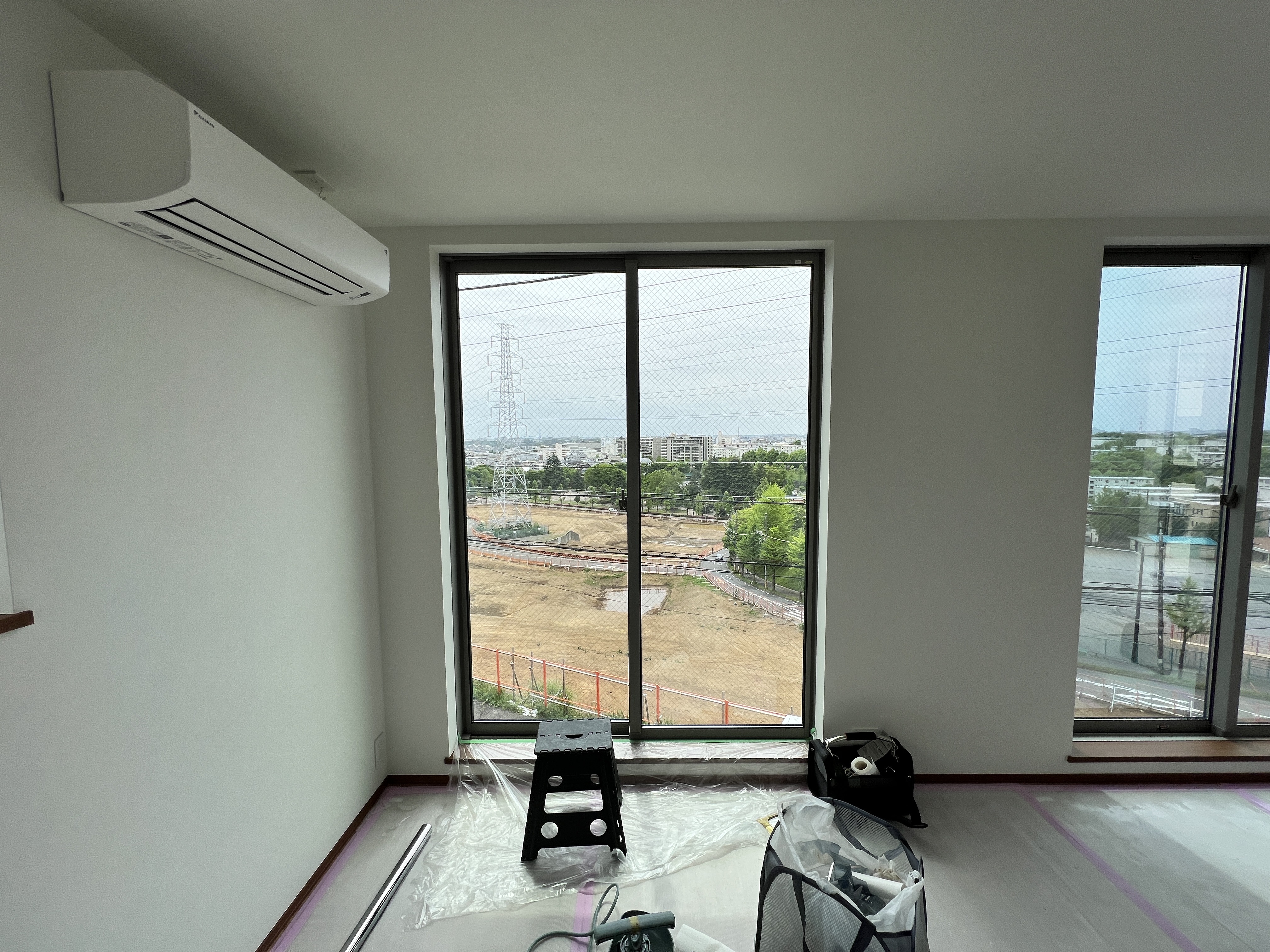 新居で足場が必要な高所での作業でしたが対応することができました。西日が強かったので遮熱効果の強いミラーフィルムを選んでいただきました。
